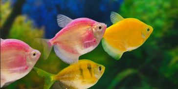 GloFish are bright, colorful, and super fun to watch! They come in neon shades like pink, blue, purple, and green, and they glow beautifully under aquarium lighting.