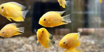 Gold Severums are vibrant yellow cichlids known for their calm personalities and graceful swimming. They thrive in warm, well-decorated aquariums.